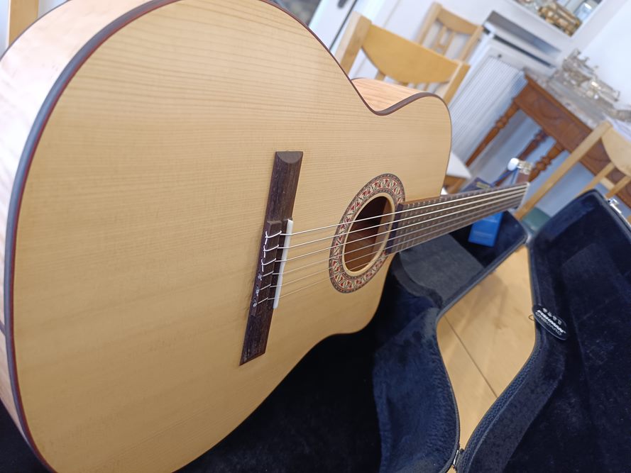 GUITARRA MODELO CUTAWAY FC fabricada a mano artesanalmente, en acabado de madera de arce en la época de los años 1.940 del siglo pasado.
